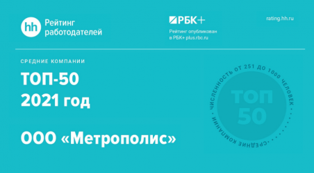 Компания «Метрополис» вошла в «Топ-50 лучших работодателей России» 17 февраля портал HeadHunter представил свой ежегодный Рейтинг работодателей России.