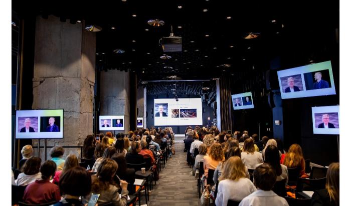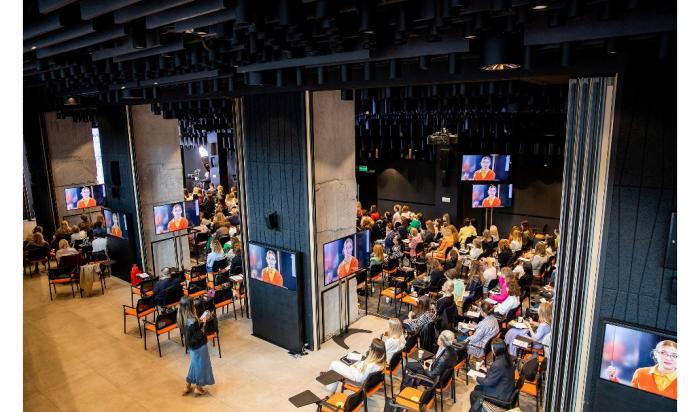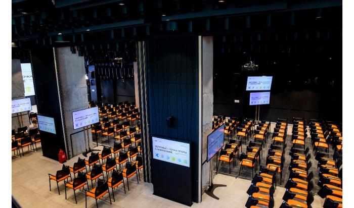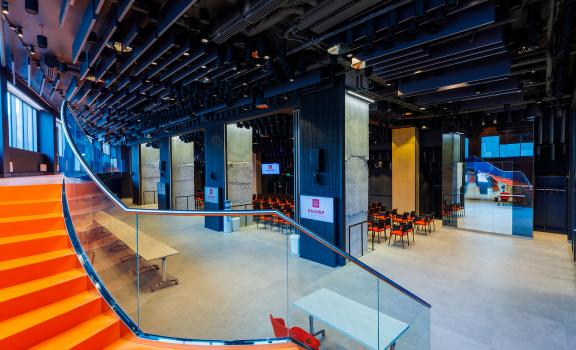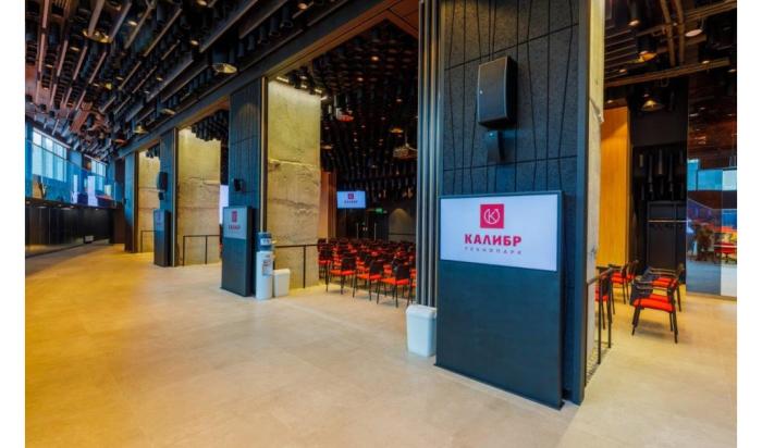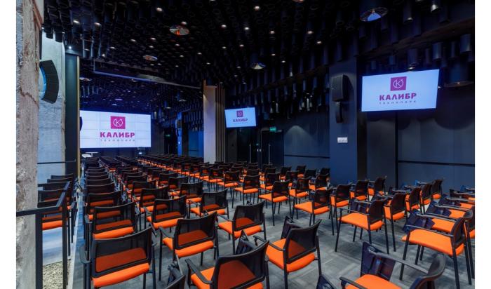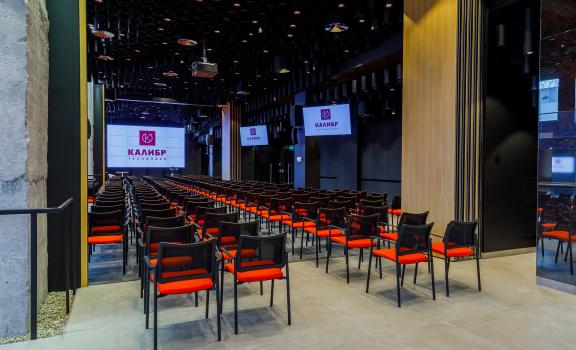 A modern hall, which can fit up to 250 people, can be transformed and expanded. The conference halls are equipped with everything you need: from furniture and multimedia to separate rooms for conference interpreters. Kalibr Conference Hall is suitable for holding a seminar for 25 people or a big conference for 250+ people. Our team will fully prepare the hall exactly according to your requirements.