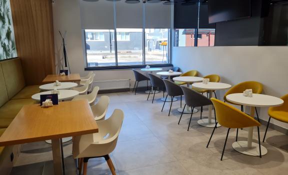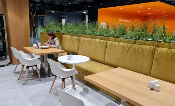 Во время обеда с 12-ти до 18-ти действует сезонное меню из салатов, супов и горячих блюд, готовящихся индивидуально под заказ.