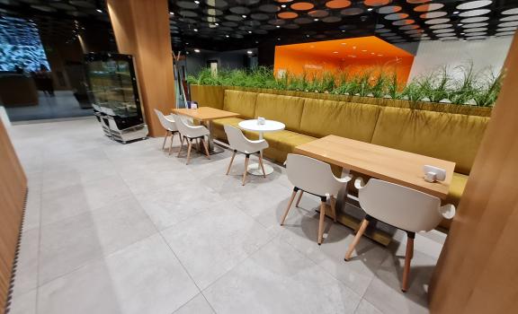 В основе барного меню широкий ассортимент кофе и чая, а также сезонные прохладительные или согревающие напитки, фреши, смузи и лимонады.
