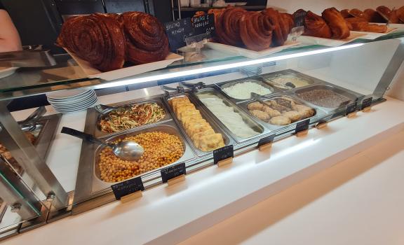 Весь ассортимент готовится непосредственно в кафе, только из свежих и сезонных ингредиентов.