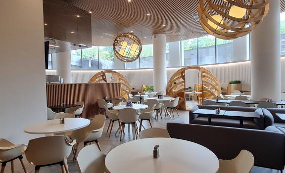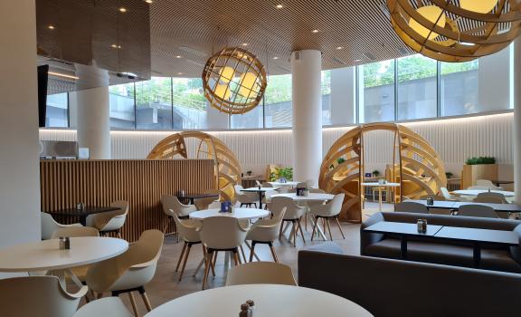 Пространство, отвечающее всем современным требованиям и трендам корпоративного питания в Бизнес-центрах премиум класса.