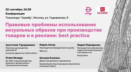 Конференция «Правовые проблемы использования визуальных образов при производстве товаров и в рекламе: best practice» Delcredere и Технопарк "Калибр" приглашают на конференцию, где гости обсудят пределы использовани