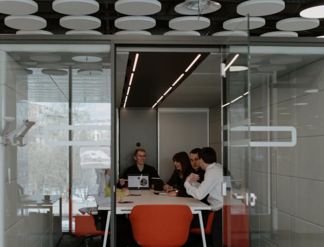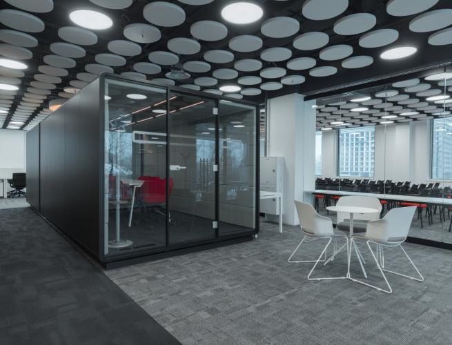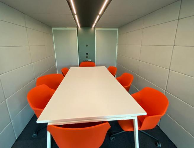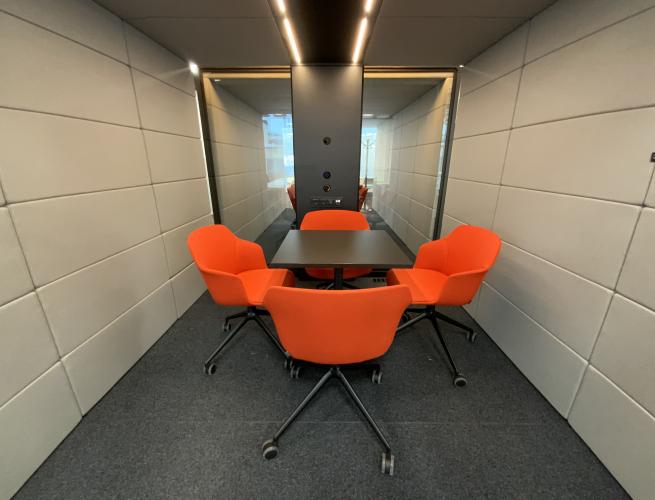 Пространство, оборудованное удобной мебелью, шумоизолирующими стенами, регулируемым светом и температурой. Подходит для встреч с партнерами, совещаний с командой, conference-call с зарубежными коллегами.