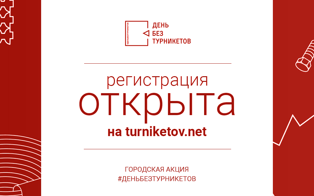 Для участия в мероприятии необходима регистрация на сайте "День без турникетов" http://turniketov.net/