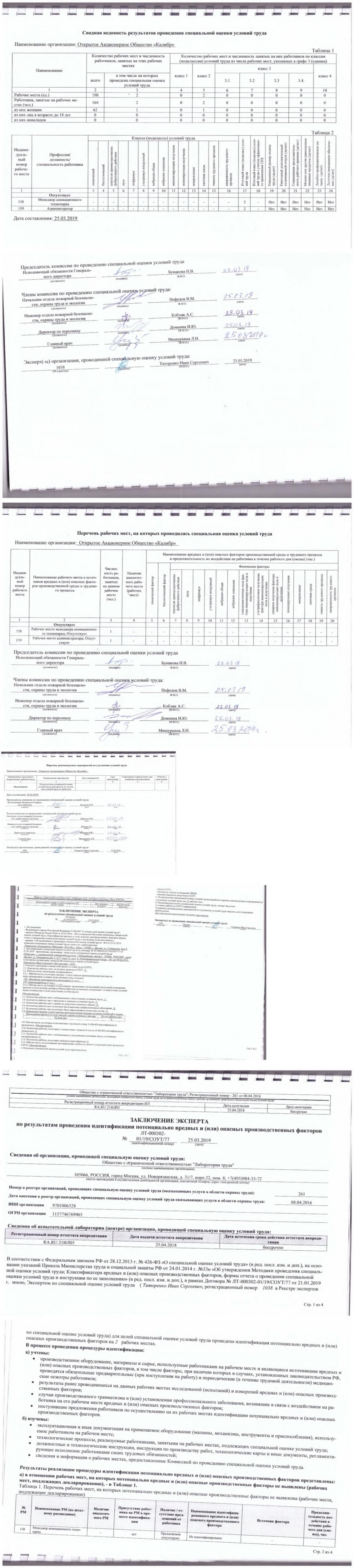 В мае 2019 года в соответсвии с п.6. статьи 15 Федерального закона от 28.12.2013 г. №426-ФЗ «О специальной оценке условий труда» рабочие места Технопарка Калибр в строении 1 (подъезд 1.18 2-й этаж) были протестированы сертифицированной Министерством труда и соцзащиты экспертной организацией "Лаборатория труда" на предмет установления классов условий труда. Итогом данной проверки было вынесено решение, что мероприятия по улучшению условий труда не требуются. Это означает, что рабочие места в данном помещении соответствуют самым высоким требаниям, предъявляемым к ним Законодательством РФ.