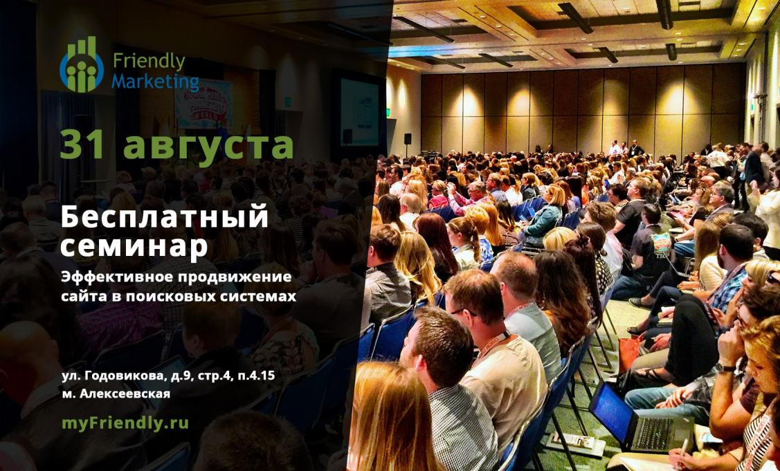 31 августа в Деловом центре Технопарка «Калибр» состоится открытый семинар на тему "Эффективное продвижение сайта в поисковых системах" от компании Friendly Marketing.