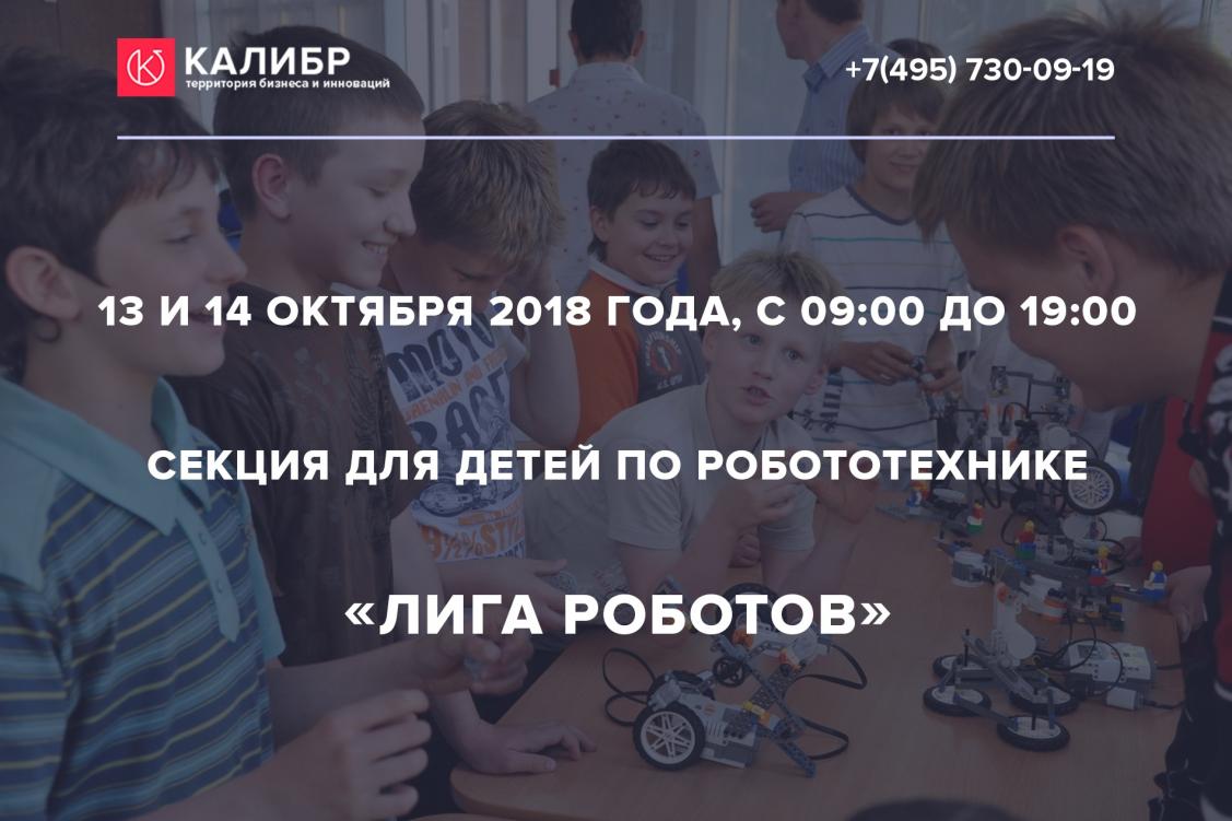 13 и 14 октября 2018 года, с 09:00 до 19:00; Лига роботов — 100 кружков образовательной робототехники в Москве и Московской области. От 5,5 до 17 лет.