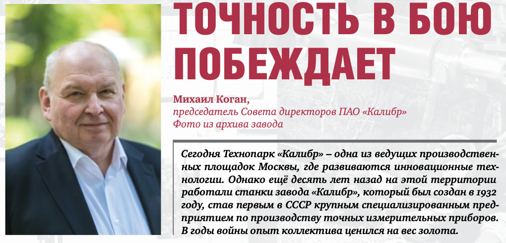 К 75-летию Победы Председатель совета директоров ПАО «Калибр» Михаил Коган поделился историей завода «Калибр» в годы Великой Отечественной войны журналу «Русский инженер».