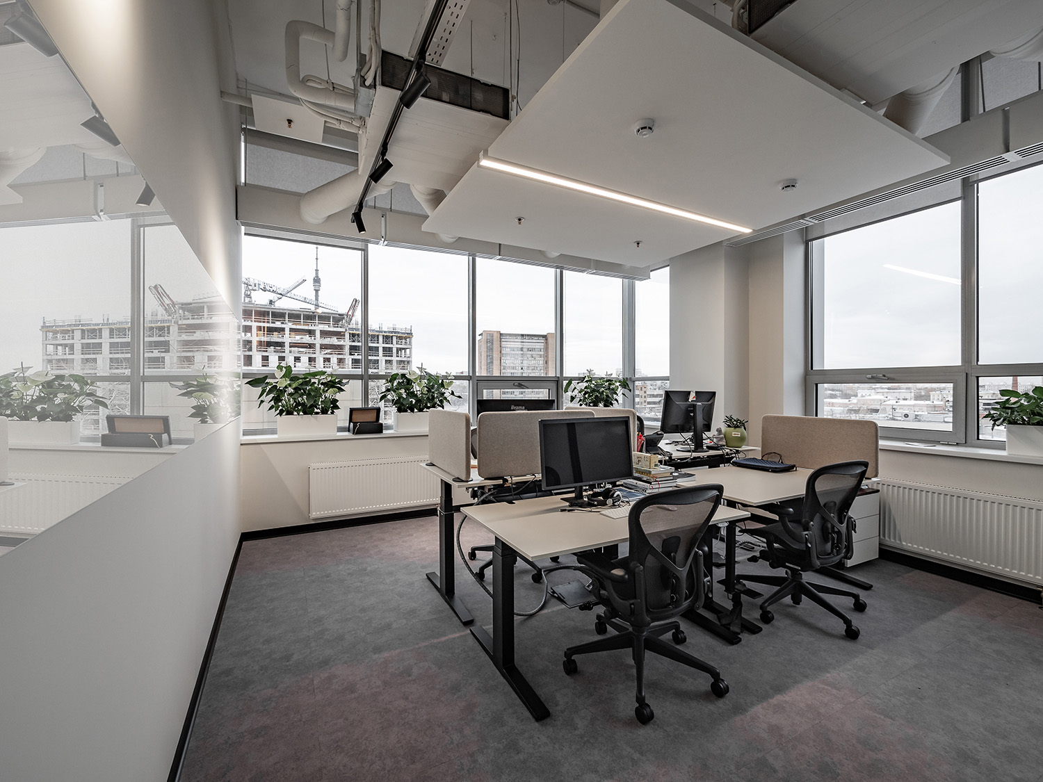 — Освещенность 350 люкс над рабочими местами (размещенными по проекту);