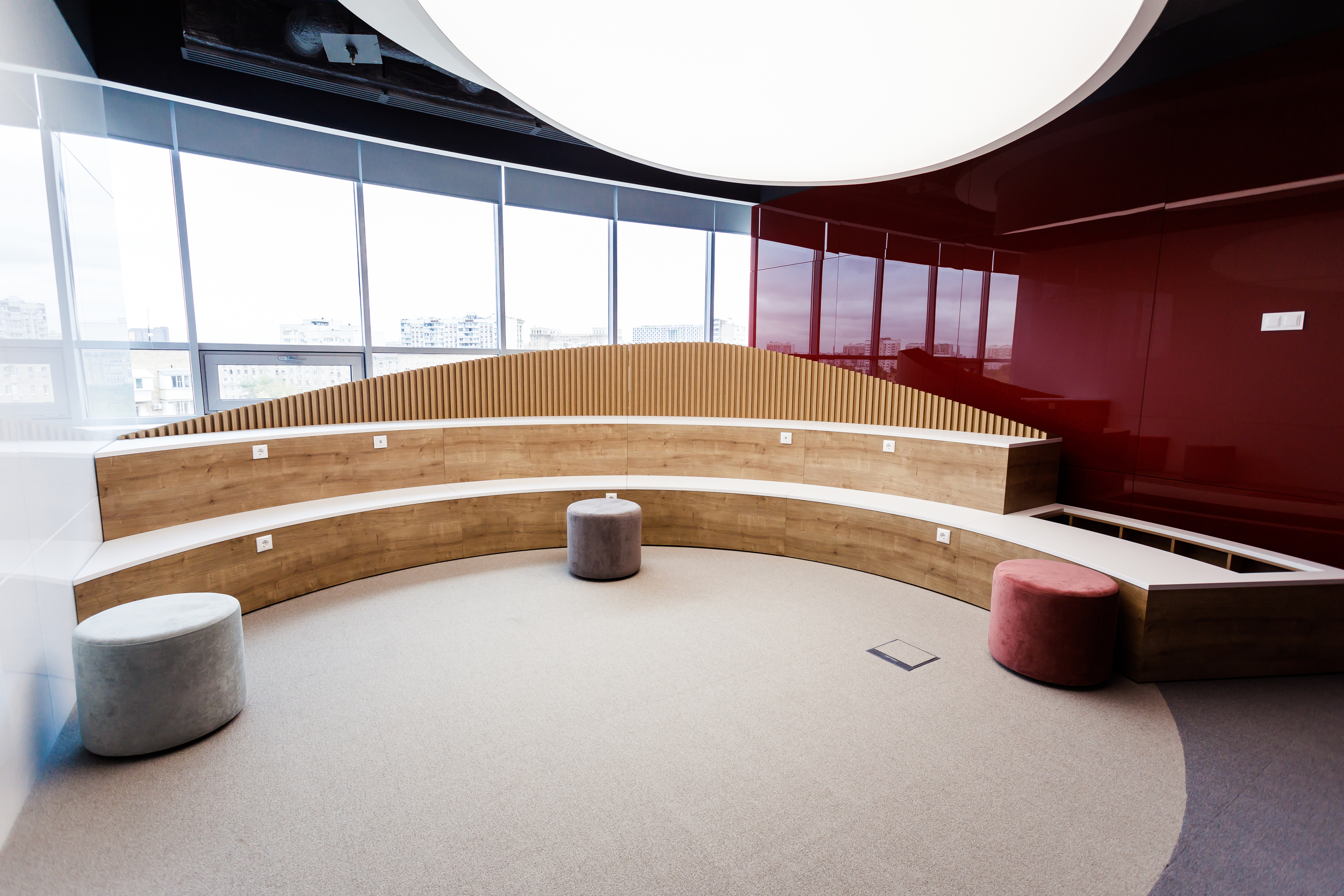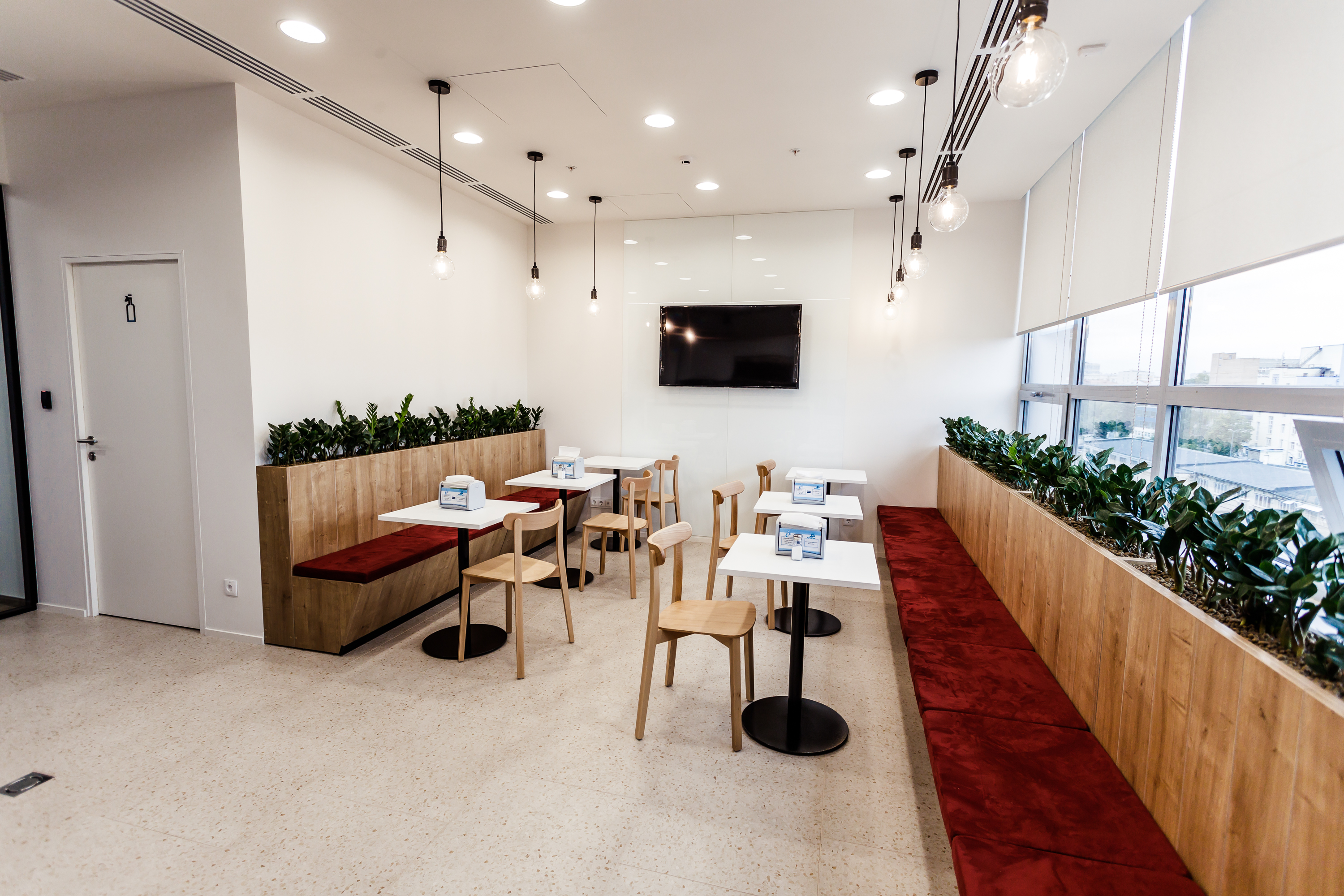 — На территории расположены: банкоматы, кафе, конференц-залы, кофейни, медицинский кабинет, уличная спортивная площадка для игровых видов спорта.