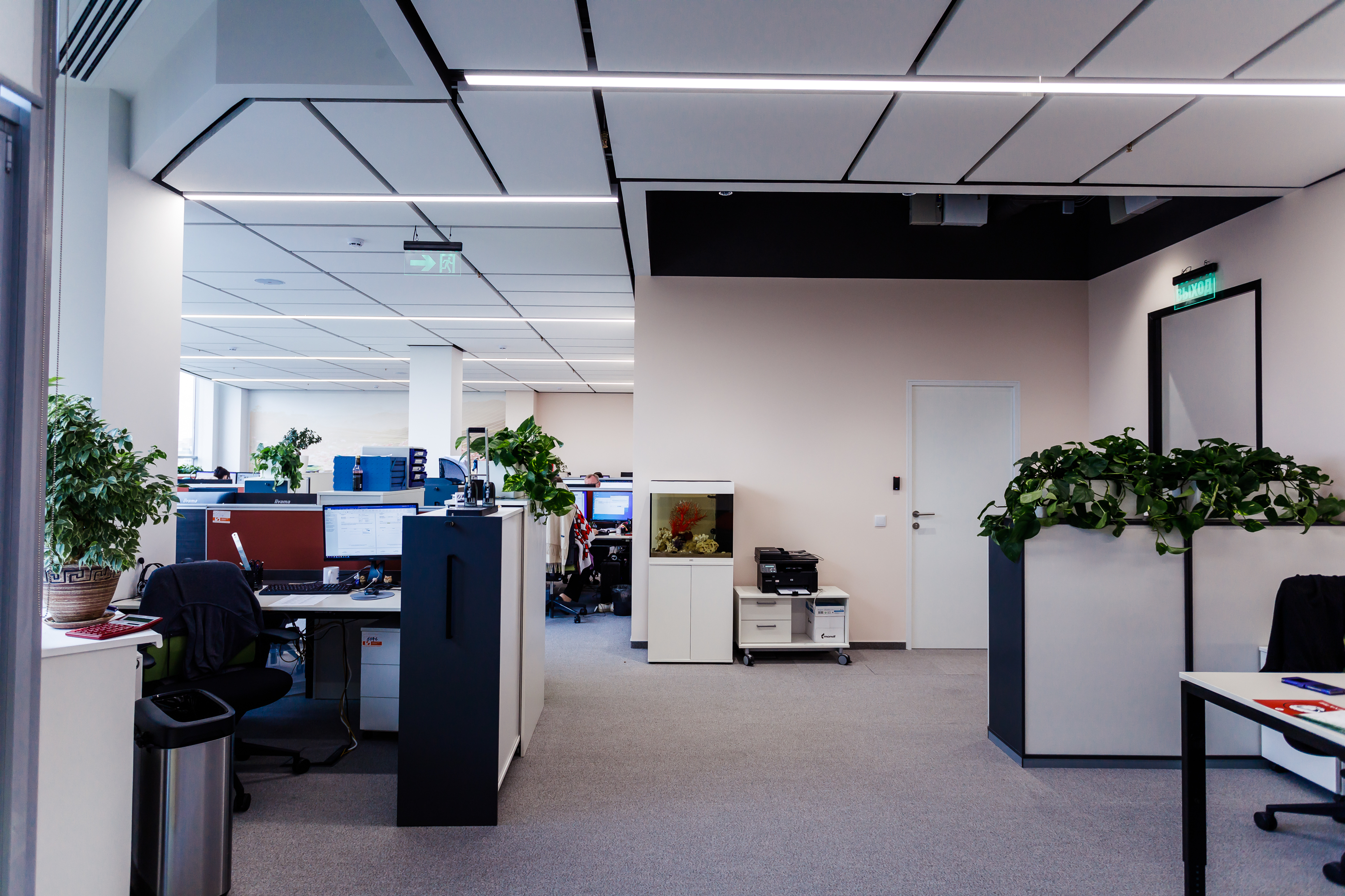 — Приточно-вытяжная вентиляция. Воздухообмен 10.000 м3/ч на м2 офисных площадей;