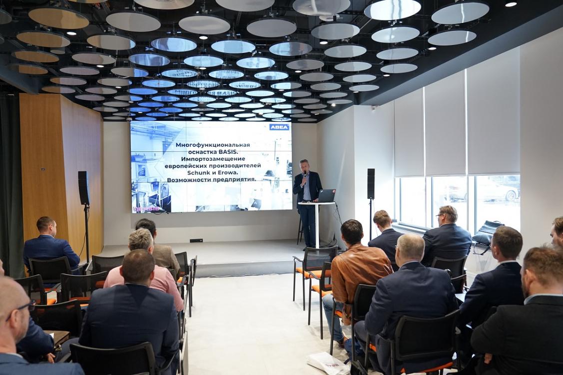 В рамках семинара была продемонстрирована линейка «BASIS», которая представляет собой высокоточную автоматическую систему позиционирования и работающие с ней разного рода приспособления, предназначенные для закрепления деталей при токарной, токарно-фрезерной, и фрезерной обработке, которая является решением по импортозамещению европейских производителей, таких как Schunk и Erowa.