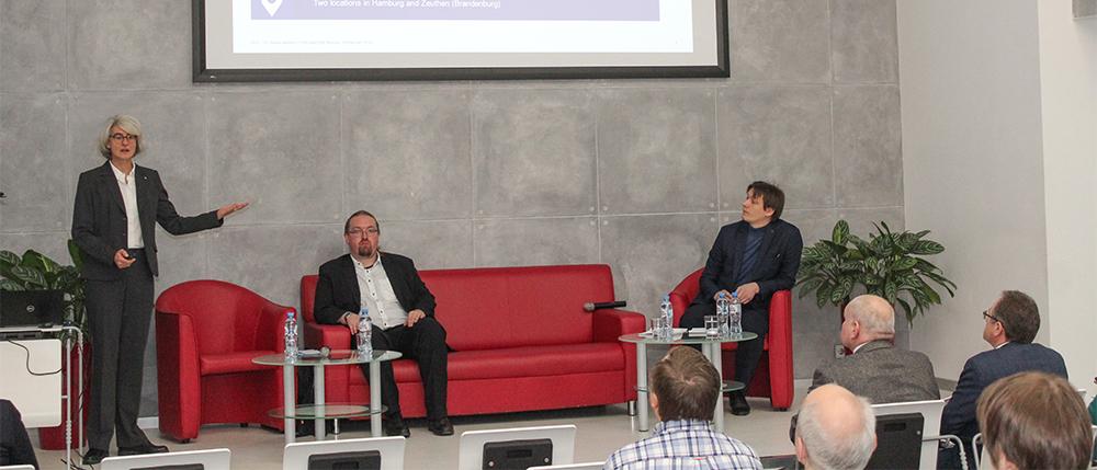 От России в семинаре приняли участие представители технопарка и Московского инновационного кластера. Германию представляло Объединение немецких научно-исследовательских центров имени Гельмгольца (Helmholtz-Gemeinschaft Deutscher Forschungszentren) – крупный научный кластер ФРГ, в состав которого входят 19 естественно-научных, технических и медико-биологических центров, где работают более 39 тысяч сотрудников (примерно половина их них – ученые).