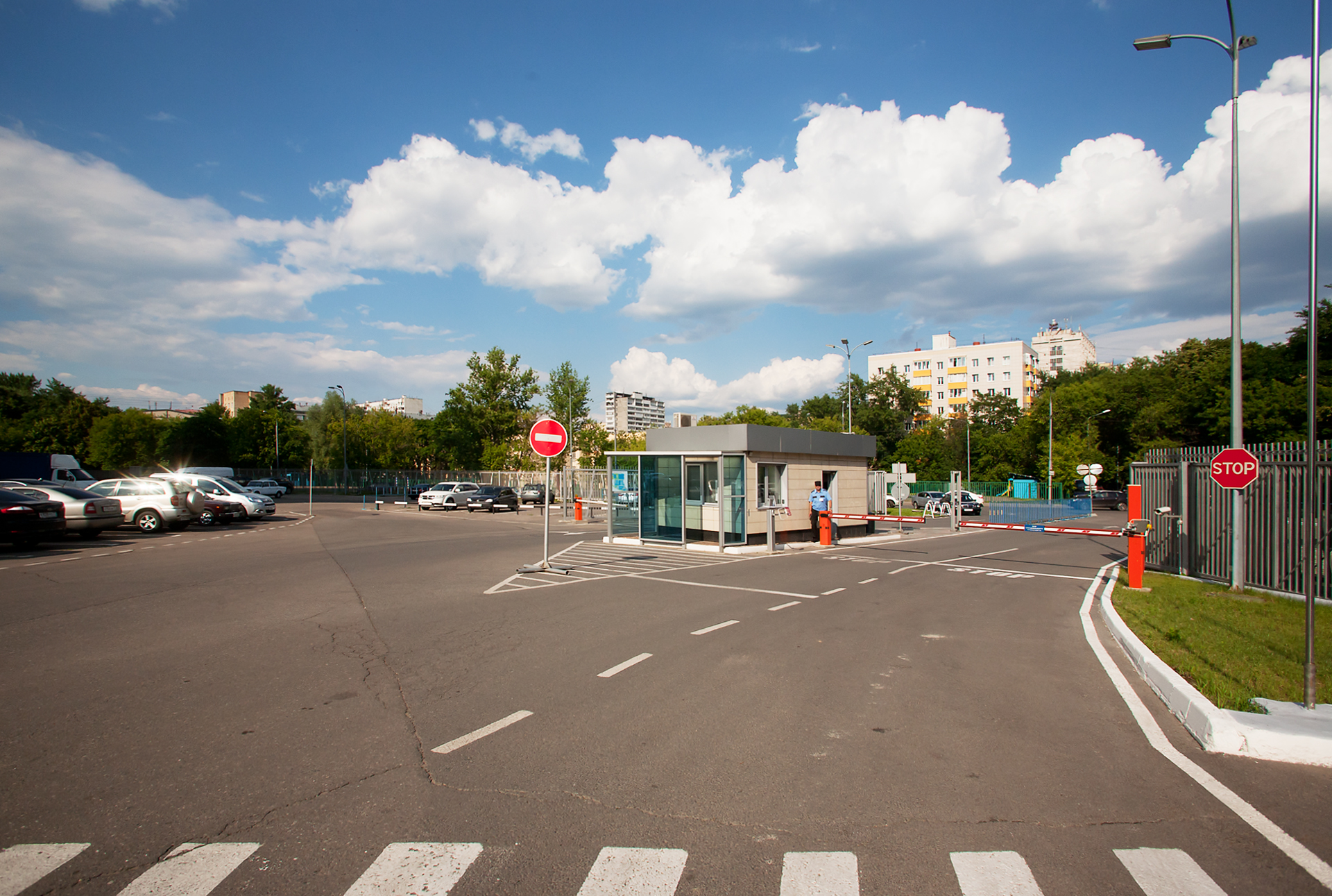 Собственная просторная и благоустроенная территория "Калибра", площадью более 14 Га, располагает вместительной парковой, рассчитанной более чем на 1000 машиномест с возможностью размещения грузового автотранспорта.